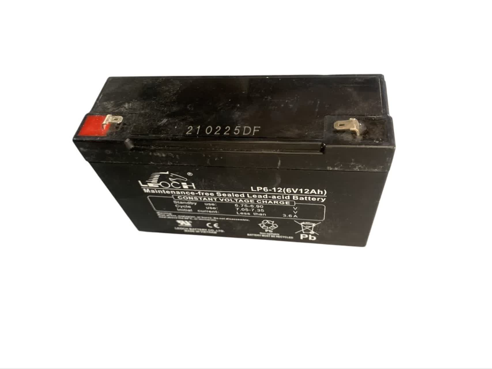 این باتری سرب اسید 6 ولت 12 آمپر ساعت است. این باتری می تواند در خروجی جریان 12 آمپر را به مدت یک ساعت  خروجی داشته باشد.  در صورت پایان یافتن عمر باتری، آن را به مراکز بازیافت باطری تحویل دهید.
